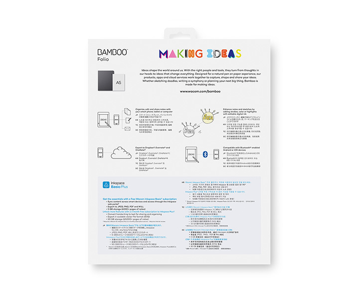 Sync to existing cloud services: Inkspace, Dropbox®, Evernote®, and OneNote®