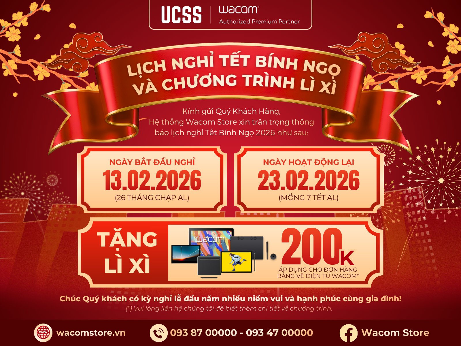 [THÔNG BÁO] LỊCH NGHỈ TẾT VÀ CHƯƠNG TRÌNH LÌ XÌ ĐẦU NĂM TẠI WACOM STORE