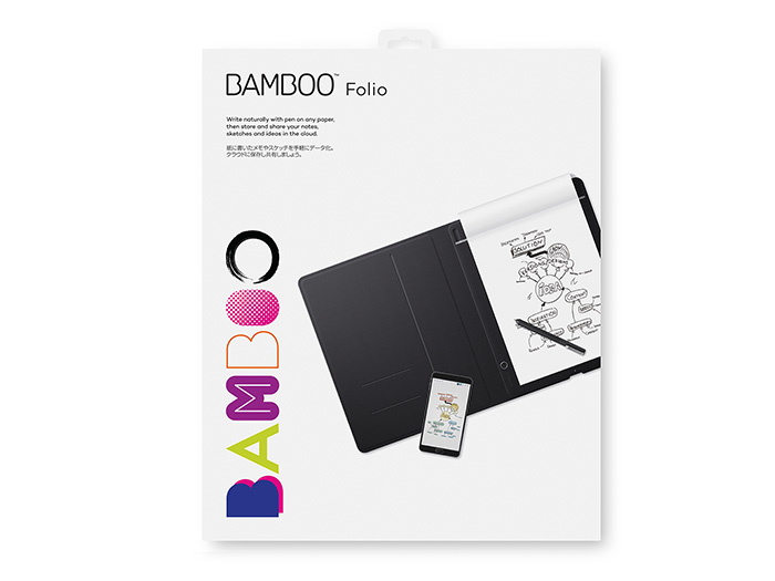 Bamboo Folio is a smartpad that allows you to write naturally with pen on any paper, and with the push of a button convert your handwritten notes into “living” digital files. With the Wacom Inkspace app you can organize, edit, and share your notes and sketches on your iOS, Android Bluetooth® enabled or Windows 8.1 or later smart phone or tablet. Don’t worry if you’re not near your mobile device – you can store up to 100 pages on your Bamboo Folio and sync later.