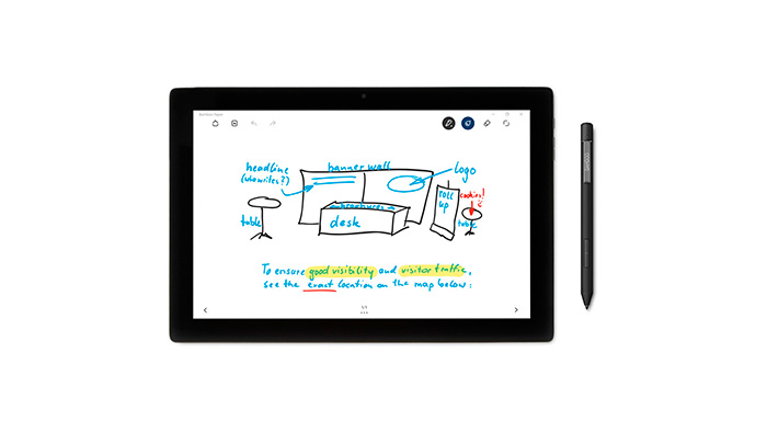 With the Bluetooth button to start the Windows Ink workspace, ideas can be implemented immediately.