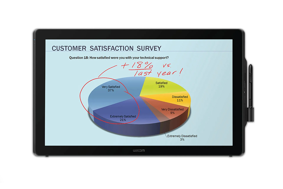 Featuring 24-inch, full HD displays, the DTK-2451 is Wacom’s largest pen display for businesses and educational institutions. The generous active area provides a comfortable work surface for writing and signing digital documents or annotating directly on presentations. Industry-leading digital pen performance allows users to add drawings, sketches and diagrams to presentations or lesson plans to elaborate on key concepts and spontaneously integrate new ideas into the discussion. And with 2,048 levels of pen pressure, users can enjoy precise drawing, writing, and annotating, plus enhanced biometric signature capture.