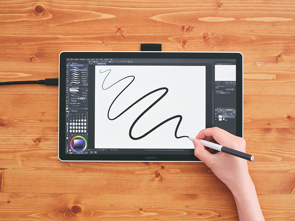 Wacom One có thể kết nối với máy tính Windows, Mac hoặc Chromebook chỉ bằng một sợi cáp USB-C duy nhất, truyền đồng thời nguồn, hình ảnh và dữ liệu bút – giúp bàn làm việc luôn gọn gàng. Đây là lựa chọn lý tưởng cho không gian nhỏ hoặc người dùng thường xuyên di chuyển. Bạn có thể dễ dàng bỏ Wacom One vào ba lô cùng máy tính xách tay.